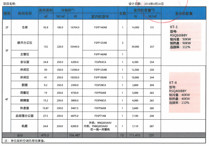 空調系統(tǒng)配置表