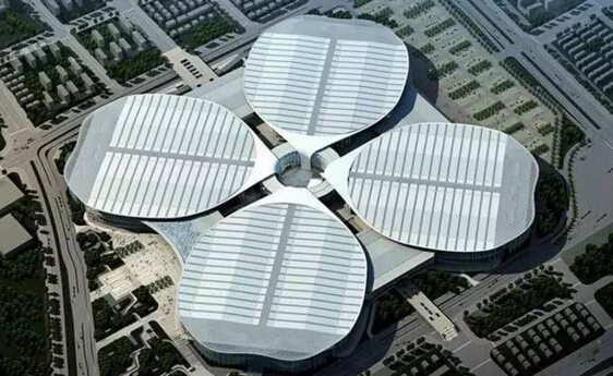 國家會展中心(上海)位于上海市虹橋商務區核心區,緊鄰虹橋交通樞紐,由展廳、商業用房、酒店、辦公用房組成,平面為四葉草形狀,設計效果見圖1,總建筑面積147萬㎡。